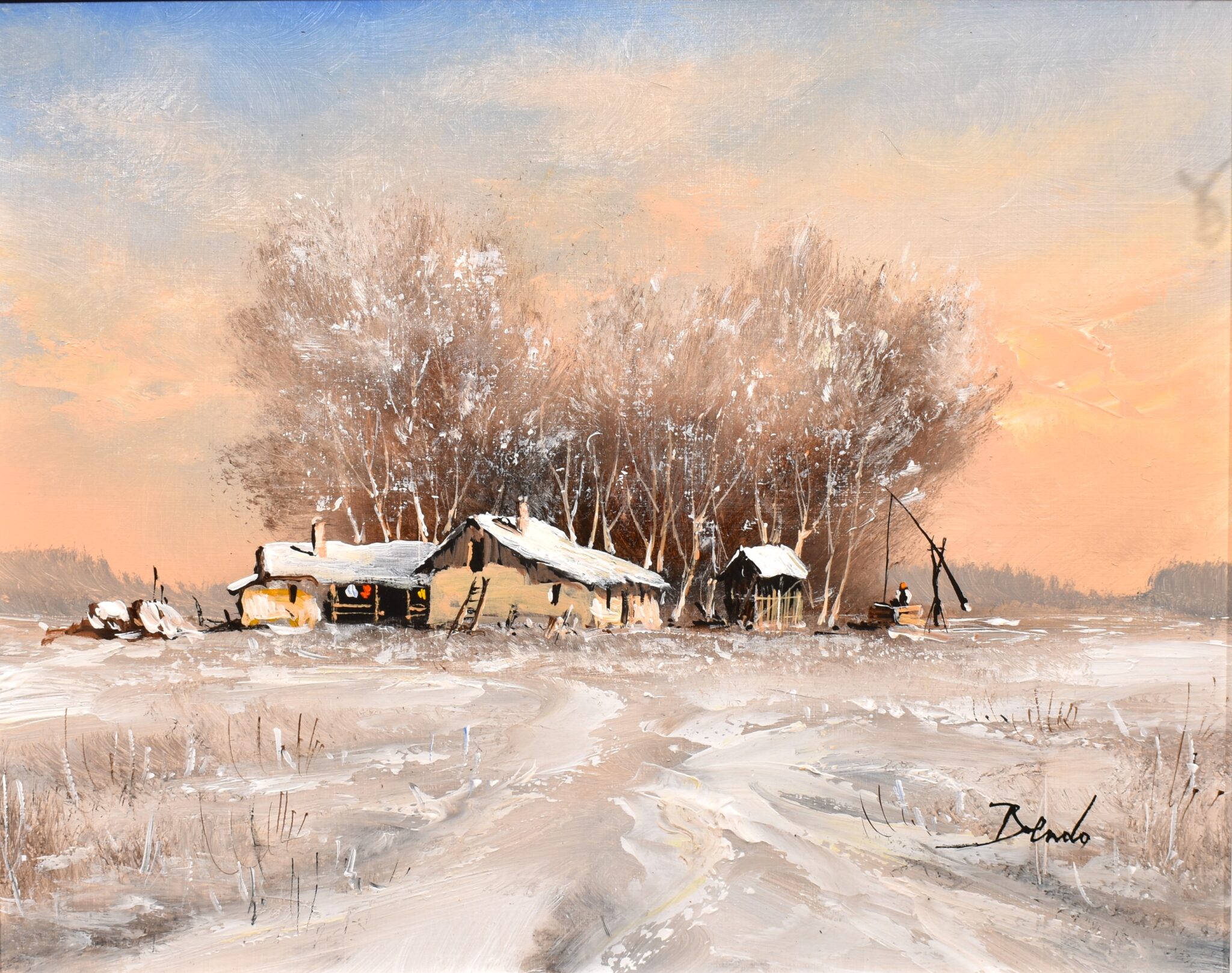 Zoltán Benda – Winter on the farm (24x30 cm)