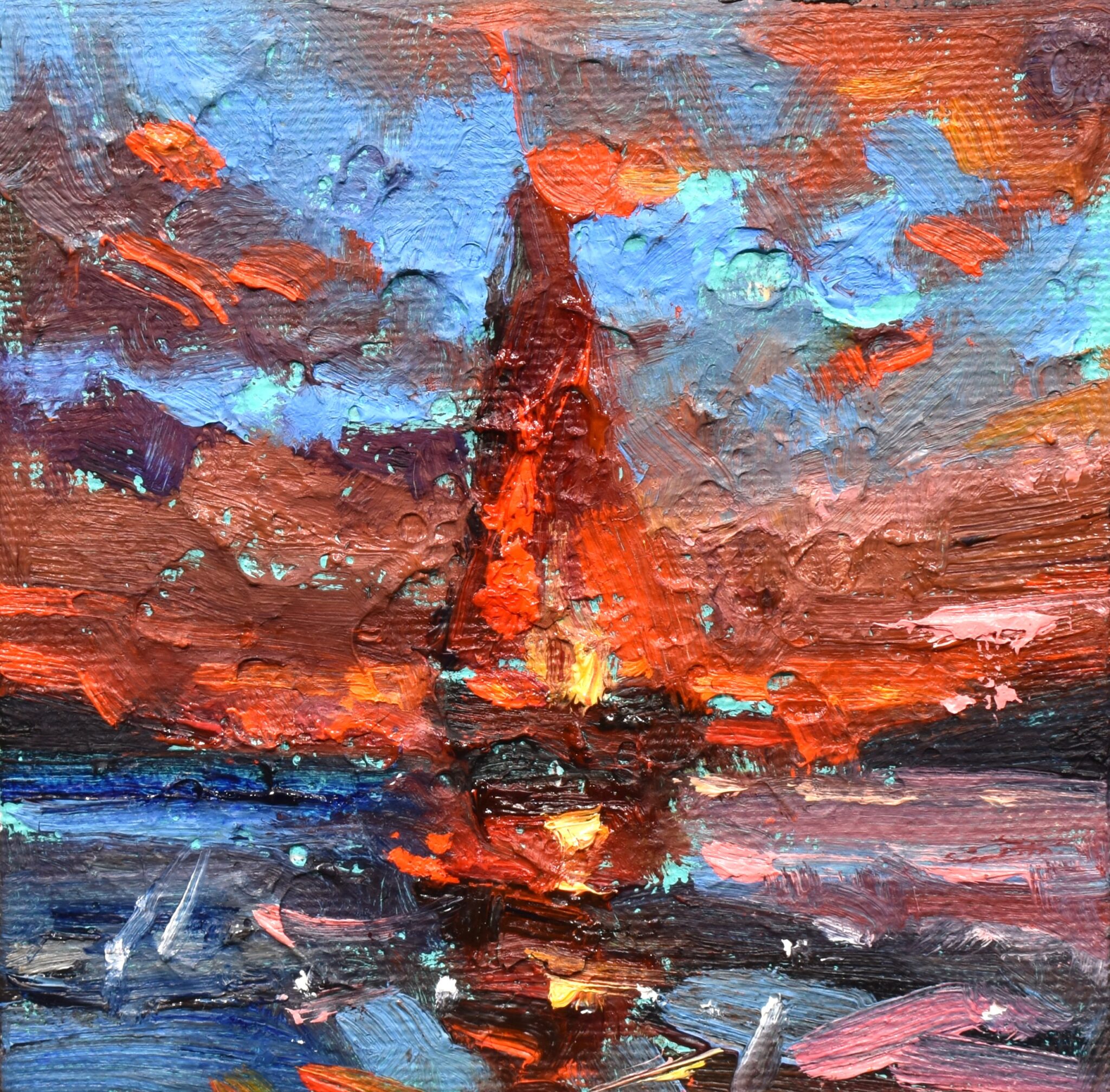Suhaj Zoltán – Lángoló alkony (10x10 cm)